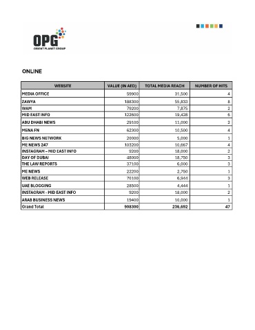 WEBSITE VALUE (IN AED) TOTAL MEDIA REACH NUMBER OF HITS