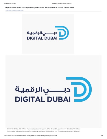 DUBAI, 12th October, 2025 (WAM) – The world’s largest technology event, GITEX Global 2025, opens tomorrow at the Dubai World Trade