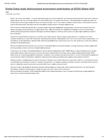 10/14/25, 8:38 AM Digital Dubai leads distinguished government participation at GITEX Global 2025