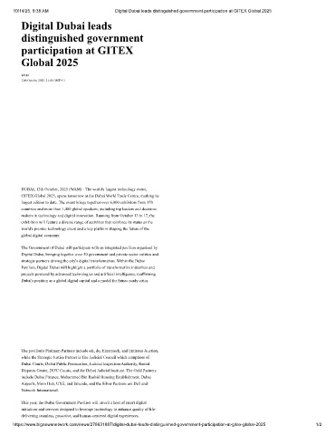 10/14/25, 8:38 AM Digital Dubai leads distinguished government participation at GITEX Global 2025