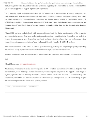 9/18/25, 4:30 PM Mastercard collaborates with HyperPay to transform the region’s business payments landscape – Executive Bulletin