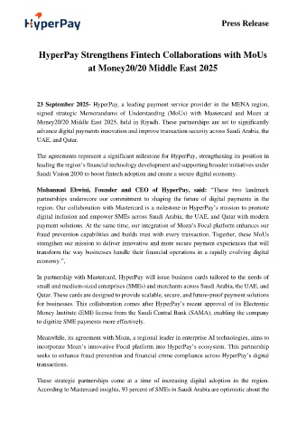 region. Our collaboration with Mastercard is a milestone in HyperPay’s mission to promote