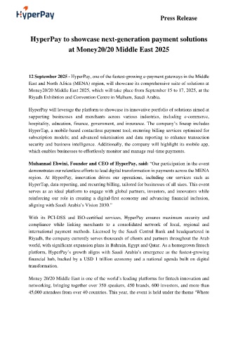 Muhannad Ebwini, Founder and CEO of HyperPay, said: “Our participation in the event