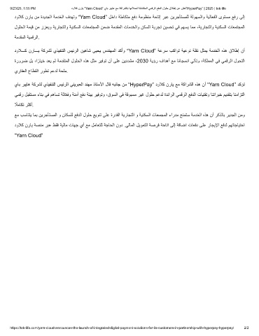 9/23/25, 1:55 PM دوﻼﻛ نرﺎﯾ “Yarn Cloud” يﺎﺑ رﺑﯾﺎھ ﻊﻣ ﺔﻛارﺷﻟﺎﺑ ﺎﮭﺋﻼﻣﻌﻟ ﺔﻠﻣﺎﻛﺗﻣﻟا ﻲﻣﻗرﻟا ﻊﻓدﻟا لوﻠﺣ قﻼطإ نﻋ نﻠﻌﺗ”HyperPay” | 2025 | tek-life