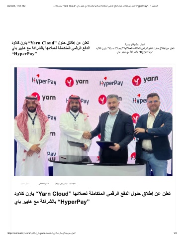 9/23/25, 1:55 PM دوﻼﻛ نرﺎﯾ "Yarn Cloud" يﺎﺑ رﺑﯾﺎھ ﻊﻣ ﺔﻛارﺷﻟﺎﺑ ﺎﮭﺋﻼﻣﻌﻟ ﺔﻠﻣﺎﻛﺗﻣﻟا ﻲﻣﻗرﻟا ﻊﻓدﻟا لوﻠﺣ قﻼطإ نﻋ نﻠﻌﺗ "HyperPay" - 1 ﻖطﺎﻧﻣﻟا