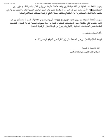 9/23/25, 1:54 PM ﺔﯾرﺎﺑﺧﻹا برﻏ | "Yarn Cloud" ﻊﻣ ﺔﻛارﺷﻟﺎﺑ ﺎﮭﺋﻼﻣﻌﻟ ﺔﻠﻣﺎﻛﺗﻣﻟا ﻲﻣﻗرﻟا ﻊﻓدﻟا لوﻠﺣ قﻼطإ نﻋ نﻠﻌﺗ "HyperPay"