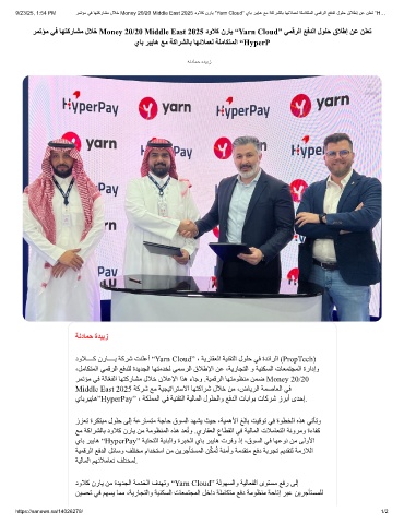 9/23/25, 1:54 PM رﻣﺗؤﻣ ﻲﻓ ﺎﮭﺗﻛرﺎﺷﻣ لﻼﺧ Money 20/20 Middle East 2025 دوﻼﻛ نرﺎﯾ “Yarn Cloud” يﺎﺑ رﺑﯾﺎھ ﻊﻣ ﺔﻛارﺷﻟﺎﺑ ﺎﮭﺋﻼﻣﻌﻟ ﺔﻠﻣﺎﻛﺗﻣﻟا ﻲﻣﻗرﻟا ﻊﻓدﻟا لوﻠﺣ قﻼطإ نﻋ نﻠﻌﺗ “H…