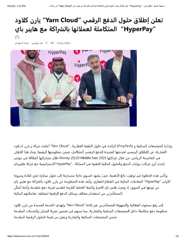 9/23/25, 1:54 PM دوﻼﻛ نرﺎﯾ "Yarn Cloud" يﺎﺑ رﺑﯾﺎھ ﻊﻣ ﺔﻛارﺷﻟﺎﺑ ﺎﮭﺋﻼﻣﻌﻟ ﺔﻠﻣﺎﻛﺗﻣﻟا ﻲﻣﻗرﻟا ﻊﻓدﻟا لوﻠﺣ قﻼطإ نﻠﻌﺗ "HyperPay" - يدﺎﺻﺗﻗﻹا رﺷؤﻣﻟا ﺔﻔﯾﺣﺻ