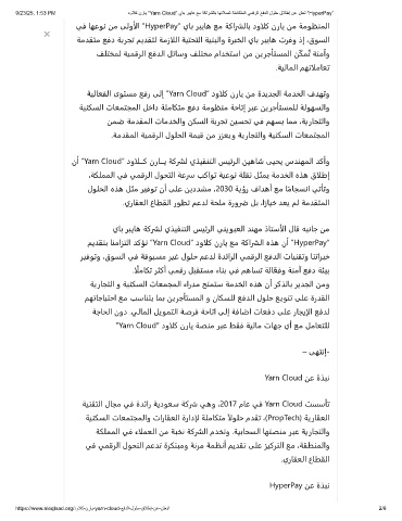 9/23/25, 1:53 PM دوﻼﻛ نرﺎﯾ “Yarn Cloud” يﺎﺑ رﺑﯾﺎھ ﻊﻣ ﺔﻛارﺷﻟﺎﺑ ﺎﮭﺋﻼﻣﻌﻟ ﺔﻠﻣﺎﻛﺗﻣﻟا ﻲﻣﻗرﻟا ﻊﻓدﻟا لوﻠﺣ قﻼطإ نﻋ نﻠﻌﺗ “HyperPay”