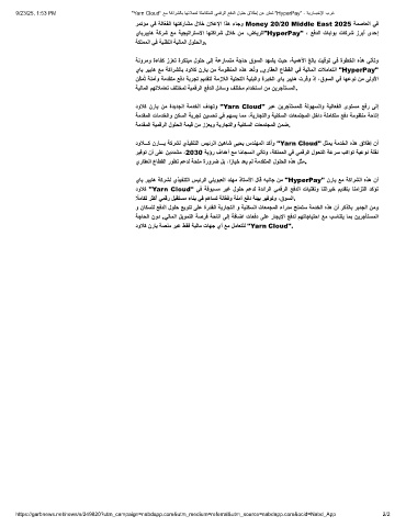 9/23/25, 1:53 PM "Yarn Cloud" ﻊﻣ ﺔﻛارﺷﻟﺎﺑ ﺎﮭﺋﻼﻣﻌﻟ ﺔﻠﻣﺎﻛﺗﻣﻟا ﻲﻣﻗرﻟا ﻊﻓدﻟا لوﻠﺣ قﻼطإ نﻋ نﻠﻌﺗ "HyperPay" - ﺔﯾرﺎــﺑﺧﻹا برﻏ