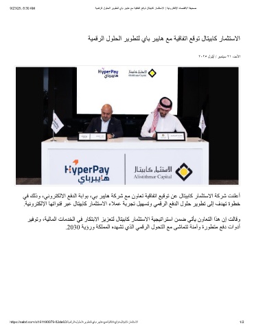ﻲﻓ ﻚﻟذو ،ﻲﻧوﺮﺘﻜﻟﻻا ﻊﻓﺪﻟا ﺔﺑاﻮﺑ ،ﻲﺑ ﺮﺒﯾﺎھ ﺔﻛﺮﺷ ﻊﻣ نوﺎﻌﺗ ﺔﯿﻗﺎﻔﺗا ﻊﯿﻗﻮﺗ ﻦﻋ لﺎﺘﯿﺑﺎﻛ رﺎﻤﺜﺘﺳﻻا ﺔﻛﺮﺷ ﺖﻨﻠﻋأ