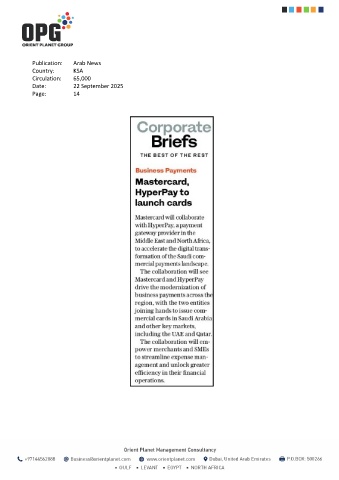 Publication: Arab News Country: KSA Circulation: 65,000 Date: 22 September 2025 Page: 14