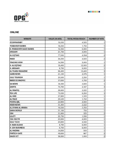 WEBSITE VALUE (IN AED) TOTAL MEDIA REACH NUMBER OF HITS