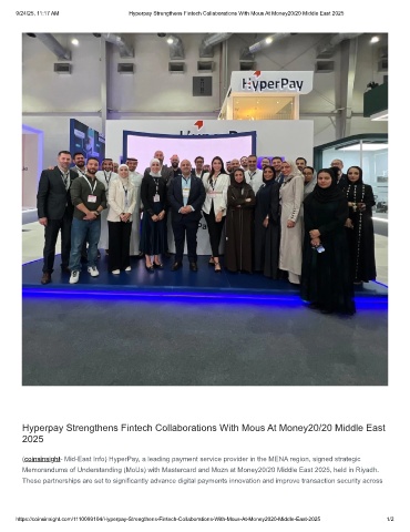 9/24/25, 11:17 AM Hyperpay Strengthens Fintech Collaborations With Mous At Money20/20 Middle East 2025