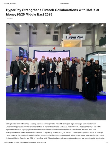 Understanding (MoUs) with Mastercard and Mozn at Money20/20 Middle East 2025, held in Riyadh. These partnerships are set to