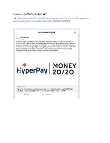 Publication: FACEBOOK- MID EAST INFO Link: https://www.facebook.com/MidEast.i/posts/hyperpay-one-of-the-fastest-growing-e- payment-gateways-in-the-middle-east-and-no/1359303956196364/
