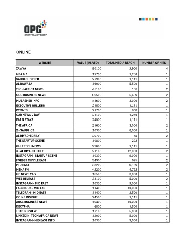 WEBSITE VALUE (IN AED) TOTAL MEDIA REACH NUMBER OF HITS