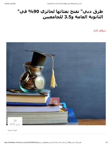 7/21/25, 2:23 PM "نﯾﯾﻌﻣﺎﺟﻠﻟ 3.5و ﺔﻣﺎﻌﻟا ﺔﯾوﻧﺎﺛﻟا ﻲﻓ %90 يزﺋﺎﺣﻟ ﺎﮭﺗﺎﺛﻌﺑ ﺢﺗﻔﺗ "ﻲﺑد قرط