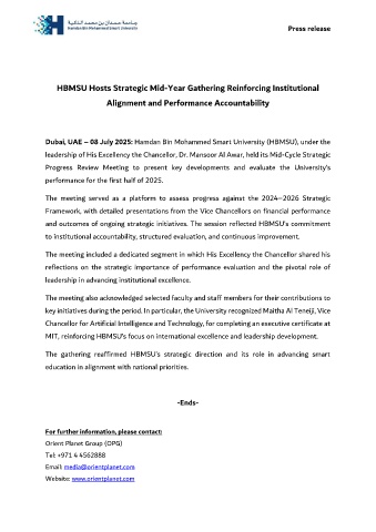 Dubai, UAE – 08 July 2025: Hamdan Bin Mohammed Smart University (HBMSU), under the