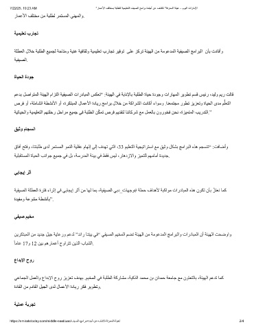 ﺔﻠﻄﻌﻟا لﻼﺧ ﺔﺒﻠﻄﻟا ﻊﯿﻤﺠﻟ ﺔﺣﺎﺘﻣو ﺔﯿﻨﻏ ﺔﯿﻓﺎﻘﺛو ﺔﯿﻤﯿﻠﻌﺗ برﺎﺠﺗ ﺮﯿﻓﻮﺗ ﻰﻠﻋ ﺰﻛﺮﺗ ﺔﺌﯿﮭﻟا ﻦﻣ ﺔﻣﻮﻋﺪﻤﻟا ﺔﯿﻔﯿﺼﻟا ﺞﻣاﺮﺒﻟا نﺄﺑ تدﺎﻓأو