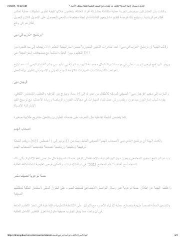 ﻦﯿﺑ ةﻮﺠﻔﻟا ﺪﺳ ﻰﻟإ فﺪﮭﯾو ،33 ﻢﯿﻠﻌﺘﻟا ﺔﯿﺠﯿﺗاﺮﺘﺳا ﻦﻤﺿ ﺔﯾرﻮﺤﻤﻟا ﺮﯿﯿﻐﺘﻟا تاردﺎﺒﻣ ﺪﺣأ ”ﻲﺑد ﻲﻓ ب ّ رﺪﺗ“ ﺞﻣﺎﻧﺮﺑ نإ ﺔﺌﯿﮭﻟا ﺖﻟﺎﻗو