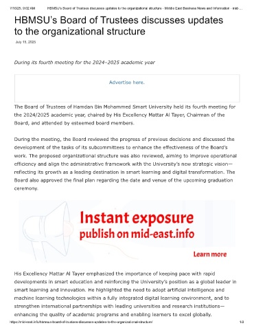 7/16/25, 9:02 AM HBMSU’s Board of Trustees discusses updates to the organizational structure - Middle East Business News and Information - mid-…