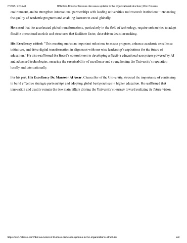 7/16/25, 9:03 AM HBMSU’s Board of Trustees discusses updates to the organizational structure | Web Release