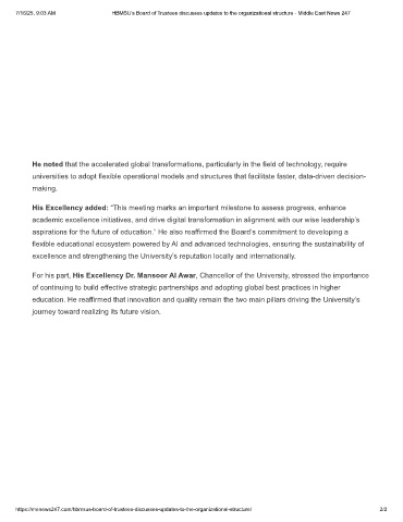 7/16/25, 9:03 AM HBMSU’s Board of Trustees discusses updates to the organizational structure - Middle East News 247