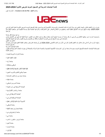 7/7/25, 3:07 PM UAE News - 2025-2024 ﺔﯾوﻧﺎﺛﻟا ﻲﺟﯾرﺧﻟ دﺣوﻣﻟا لﯾﺟﺳﺗﻟا ﻲﻓ ﺔﺟردﻣﻟا تﺎﻌﻣﺎﺟﻟا ﺔﻣﺋﺎﻗ - تارﺎﻣﻹا رﺎﺑﺧأ