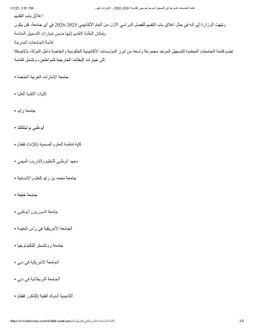 7/7/25, 3:05 PM موﯾﻟا تارﺎﻣﻹا – 2025-2024 ﺔﯾوﻧﺎﺛﻟا ﻲﺟﯾرﺧﻟ دﺣوﻣﻟا لﯾﺟﺳﺗﻟا ﻲﻓ ﺔﺟردﻣﻟا تﺎﻌﻣﺎﺟﻟا ﺔﻣﺋﺎﻗ