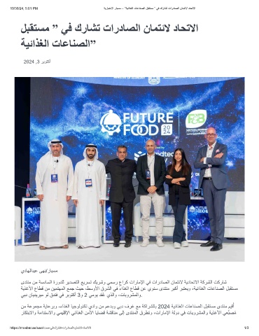 10/30/24, 5:01 PM ﺔﯾرﺎﺑﺧﻻا رﺎﺑﺳﻣ – ”ﺔﯾﺋاذﻐﻟا تﺎﻋﺎﻧﺻﻟا لﺑﻘﺗﺳﻣ ” ﻲﻓ كرﺎﺷﺗ تاردﺎﺻﻟا نﺎﻣﺗﺋﻻ دﺎﺣﺗﻻا