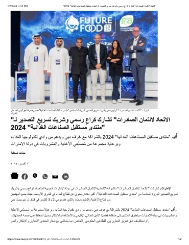 10/30/24, 4:58 PM "2024 "ﺔﯾﺋاذﻐﻟا تﺎﻋﺎﻧﺻﻟا لﺑﻘﺗﺳﻣ ىدﺗﻧﻣ" ـﻟ رﯾدﺻﺗﻟا ﻊﯾرﺳﺗ كﯾرﺷو ﻲﻣﺳر عارﻛ كرﺎﺷﺗ "تاردﺎﺻﻟا نﺎﻣﺗﺋﻻ دﺎﺣﺗﻻا