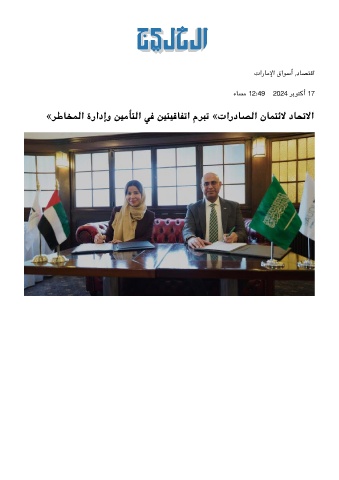تارﺎﻣﻹا قاﻮﺳأ ,دﺎﺼﺘﻗا ءﺎﺴﻣ 12:49 2024 ﺮﺑﻮﺘﻛأ 17 «ﺮﻃﺎﺨﻤﻟا ةرادإو ﻦﻴﻣﺄﺘﻟا ﻓ ﻦﻴﺘﻴﻗﺎﻔﺗا مﺮﺒﺗ «تاردﺎﺼﻟا نﺎﻤﺘﺋﻻ دﺎﺤﺗﻻا