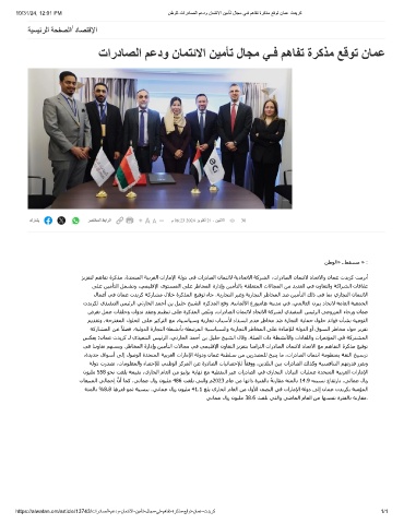 10/31/24, 12:01 PM نطوﻟا-تاردﺎﺻﻟا مﻋدو نﺎﻣﺗﺋﻻا نﯾﻣﺄﺗ لﺎﺟﻣ ﻲـﻓ مھﺎﻔﺗ ةرﻛذﻣ ﻊﻗوﺗ نﺎﻣﻋ تدﯾرﻛ