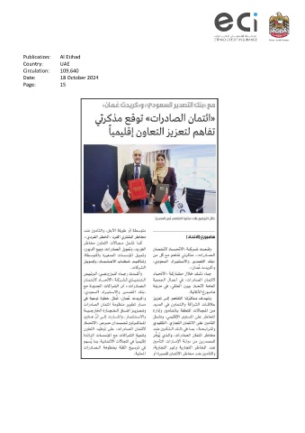 Publication: Al Etihad Country: UAE Circulation: 109,640 Date: 18 October 2024 Page: 15