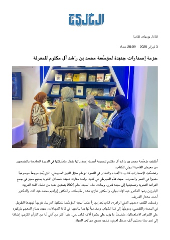 ﺔﻓﺮﻌﻤﻠﻟ مﻮﺘﻣ لآ ﺪﺷار ﻦﺑ ﺪﻤﺤﻣ ﺔﺴﺳﺆﻤﻟ ةﺪﻳﺪﺟ تاراﺪﺻإ ﺔﻣﺰﺣ