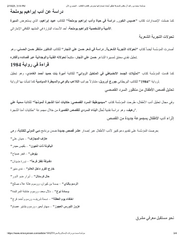 ةﺮﯿﺴﻟا ضﺮﻌﺘﺴﯾ يﺬﻟا ،ﻢﯿھاﺮﺑإ ﺪﯿﺒﻋ ﺐﺗﺎﻜﻠﻟ "ﺔﺤﻠﻣﻮﺑ ﻢﯿھاﺮﺑإ بدأو ةﺎﯿﺣ ﻲﻓ ﺔﺳارد ..رﻮﺨﻟا ﺲﯿﺴھ" بﺎﺘﻛ تاراﺪﺻﻹا ﺖﱠﻤﺿ ﺎﻤﻛ