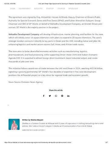 5/27/25, 4:00 PM UAE and Oman Sign Agreement to Develop Al Rawdah Special Economic Zone