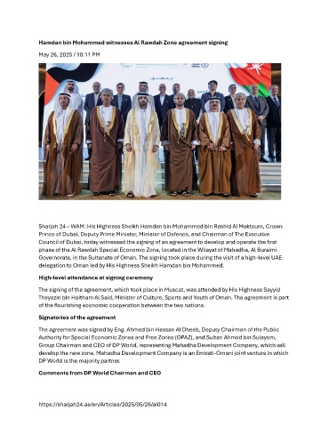 Hamdan bin Mohammed witnesses Al Rawdah Zone agreement signing