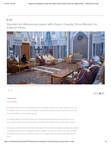 5/27/25, 3:50 PM          Hamdan bin Mohammed meets with Oman’s Deputy Prime Minister for Cabinet Affairs - Aletihad News Center