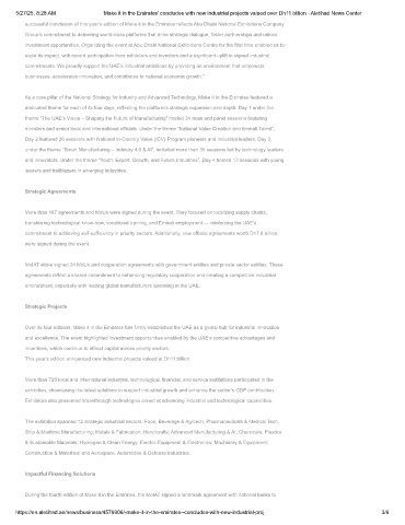 5/27/25, 8:28 AM 'Make it in the Emirates' concludes with new industrial projects valued over Dh11 billion - Aletihad News Center