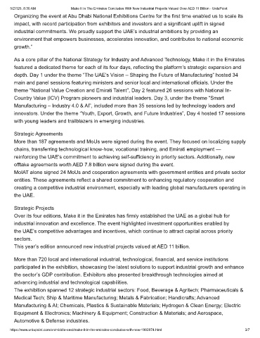 5/27/25, 8:30 AM Make It In The Emirates Concludes With New Industrial Projects Valued Over AED 11 Billion - UrduPoint