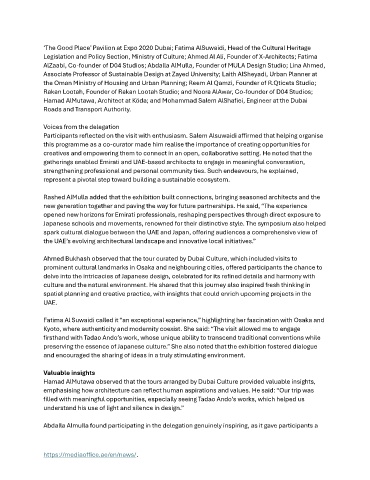 Fatima Al Suwaidi called it “an exceptional experience,” highlighting her fascination with Osaka and