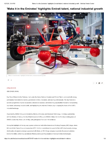 5/21/25, 3:54 PM 'Make it in the Emirates' highlights Emirati talent, national industrial growth - Aletihad News Center