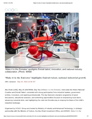 https://www.aninews.in/news/world/middle-east/make-it-in-the-emirates-highlights-emirati-talent-national-industrial-growth20250520230651/ 1/3