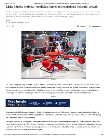5/21/25, 3:55 PM 'Make it in the Emirates' highlights Emirati talent, national industrial growth - The Tribune