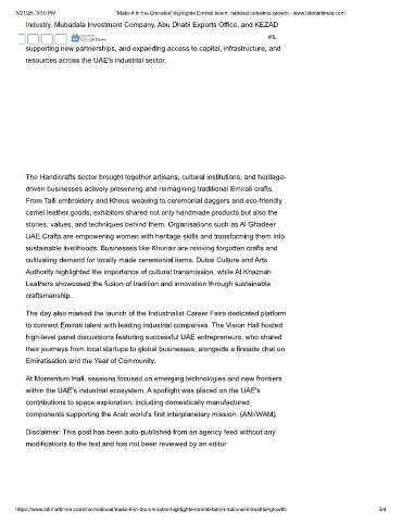 5/21/25, 3:55 PM 'Make it in the Emirates' highlights Emirati talent, national industrial growth - www.lokmattimes.com