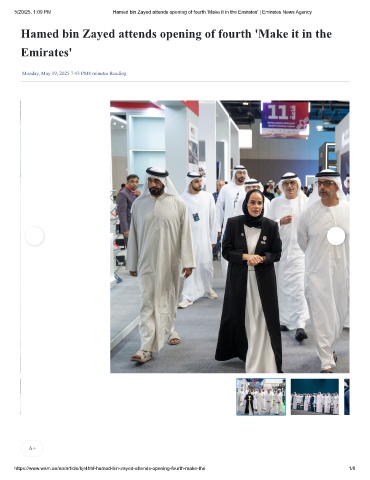 5/20/25, 1:09 PM Hamed bin Zayed attends opening of fourth 'Make it in the Emirates' | Emirates News Agency