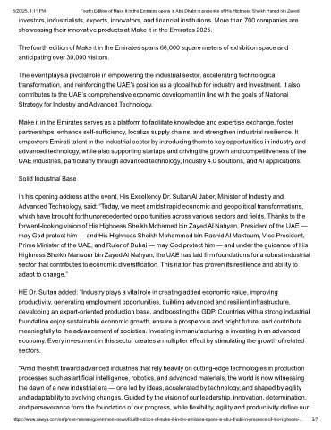 5/20/25, 1:11 PM Fourth Edition of Make it in the Emirates opens in Abu Dhabi in presence of His Highness Sheikh Hamid bin Zayed