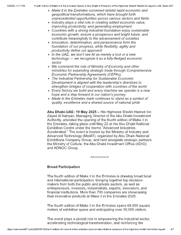 5/20/25, 1:11 PM Fourth Edition of Make it in the Emirates Opens in Abu Dhabi in Presence of His Highness Sheikh Hamid bin Zayed | UAE News 24/7